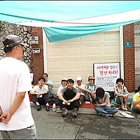 S형, 잘 있지요? 요즘 제 기분은 장마 전선처럼 저기압과 고기압을 오락가락합니다. 하루에도 몇 번씩 울다 웃다 하는 거지요. 그렇지만 어제(6월20일) 오후에는 운 좋게 비 갠 날처럼 내내 환했습니다. 이유가 있었습니다. 소위 사측 사람들이 우리 앞에서 ‘생쑈’를 한 덕입니다. 그들의 생뚱맞은 ‘무대 소품’을 보며, 그들의 어색한 모습을 사진 찍으며 몇 번이나 싱긋빙긋 웃었는지 모릅니다. 지금부터 어떤 쇼가 있었는지 제 기억을 재생해 보겠습니다. 오후 3시20분. 단식 중인 동료들 옆에 앉아 책장을 넘기고 있는데, 윤무영 기자가 뜻밖의 말을 전했습니다. “사측 사람들이 집회를 해서 자리를 조금 비켜줘야 한대요. 한 5분….” 한 달 간 집회 신고를 해놓고 아무것도 안 하다가, 경찰이 오락가락하니까 집회 시늉을 하는 거라고 했습니다. 그럼 한 번 지켜볼까. 게다가 심회장 집 앞은 우리가 영원히 찜한 곳이 아니었으므로 짐을 치워주지 뭐^^. 매트리스와 물통을 막 골목 건너편으로 옮기는데, 누군가 비탈길 위쪽 계단을 가리켰습니다. 그 순간 영화 <주유소 습격사건>과 <비열한 거리> 등에서 본 익숙한 장면이 펼쳐졌습니다. 일고여덟 명의 건장한(?) 사내들이 봉고차에서 우르르 내린 것입니다. 재미있게도 그들의 손에는 야구방망이나 쇠파이프가 아니라, 피켓이 들려 있었습니다. 피켓을 들고 쭐레쭐레 계단을 내려오는 그들의 모습은 퍽 우스꽝스러웠습니다. 개중에는 아는 얼굴도 더러 보였습니다. 기자들이 집회를 할 때마다 불편한 얼굴로 쳐다보던 충복들. 심회장 집 앞에 도착한 열 명의 충복은 쭈뼛쭈뼛거리며 현수막을 펴고, 피켓을 치켜 올렸습니다. ‘생쑈’를 보는 기분은 묘했습니다. 우리가 집회를 할 때마다 나타나 불편한 얼굴로 쳐다보던 충복들이 비슷한 행위를 하고 있으니, 온몸이 어지러울 수밖에요. 게다가 현수막에 쓰인 생뚱맞은 문구라니. ‘우리 출판 살리기 결의대회’. 우리 출판이라고? 도저히 이해 불가능한 명사의 조합. 그럼 남의 출판도 있는 거니? 피켓에 쓰인 문구도 가관이었습니다. <출판은 지식과 정보의 샘, 우리 함께 키웁시다> <함께 만들어가는 출판, 같이 누리는 밝은 미래> <출판은 문화의 상징, 우리 출판 우리가 살리자> <세계를 움직이는 힘, 독서에서 나온다>. 모두 중간이나 어미에 물음표를 붙여야 할 것 같은 구호들. 순간 엉뚱한 상상력이 발동했습니다. ‘출판’을 ‘시사저널’로 바꾸어본 거지요. 우리 시사저널 살리기 결의대회? 시사저널은 지식과 정보의 샘, 우리 함께 키웁시다? 시사저널은 문화의 상징, 우리 시사저널 우리가 살리자? 후후, 저절로 새어 나오는 웃음. 사진을 몇 장 찍으며 화투장만한 파인더로 보아도 그들은 여전히 어색했습니다. 그래서 놀리듯 농담 한마디를 툭 던졌습니다. “아무리 봐도 몹시 어색합니다!” 겸연쩍었던지 그들이 히죽히죽 웃었습니다. 내친 김에 한마디 더 얹었습니다. “구호도 외치고 해야죠!” 돌아온 대답이 걸작입니다. “침묵 시위하는 거예요. 침묵시위.” 하하. 침묵시위와 엉뚱한 상상력이 결합하자 저절로 웃음이 삐져 나왔습니다. 그렇지만 비웃음을 감추는 센스! 10분. 그들이 심회장 집 앞에서 어색하고 알쏭달쏭한 쇼를 한 시간입니다. 도대체 열 명의 충복은 그 짧은 시간에, 그 이상한 피켓과 현수막을 들고 무슨 생각을 했을까요? 자랑스러웠을까요, 아니면 쪽팔렸을까요. 아니면 ‘목구멍이 포도청이라 내 마지못해 한다’라고 생각했을까요. 저는 불쌍하고 안타까웠습니다. 시사저널 사태를 일으킨 ‘거물’들은 뒤 쪽에 물러앉아서 뒷짐을 지고 있거나 거드름을 피며 희희낙락하고 있는데, 충복들이 무슨 죄가 있어서 저런 이상야릇한 행위를 하나 싶었던 거지요. 하루빨리 그들도 이성이나 야성(?)을 되찾았으면 하는 바람입니다. 아차, 쇼 중계를 하느라 단식하는 두 분과 오늘 오후에 있었던 다른 일들을 잊을 뻔했네요. 두 분은 기운이 쪽 빠진 모습이었습니다. 발이 무거워 짧은 거리를 걷는데도 힘들어하는 기색이 역력했습니다. 다행히 간간이 내비치는 웃음이 더 맑아져서 위로가 되었습니다. 그렇지만 단식은 하루라도 빨리 끝냈으면 하는 바람입니다. 새출발 준비는 언제 할 거냐고요? 오늘은 해가 비치지 않아 약간 션했고, 가끔 선들바람도 불어 겨드랑이의 땀도 시원히 말려주었습니다. 시사모의 열혈 청년 안일 환희 백마담 등이 왕림하셔서 ‘자리’를 지키다 가셨고, ‘돌아오라’는 소리를 기다리느라 귀가 늘어난 이아무개 편집위원과 파업 기자 여러분도 얼굴을 비췄습니다. 저녁에는 노아무개 기자가 눈빛 초롱초롱한 아들과 나타나 깨나른한 나를 일깨웠고, 행사 때마다 홍길동처럼 나타나는 금속노조원 최아무개 선생은 야심한 시각에 나타나 술 취한 동네 노인과 대차게 대거리를 하다 돌아가셨습니다. 2007년 6월20일 시사저널 오윤현